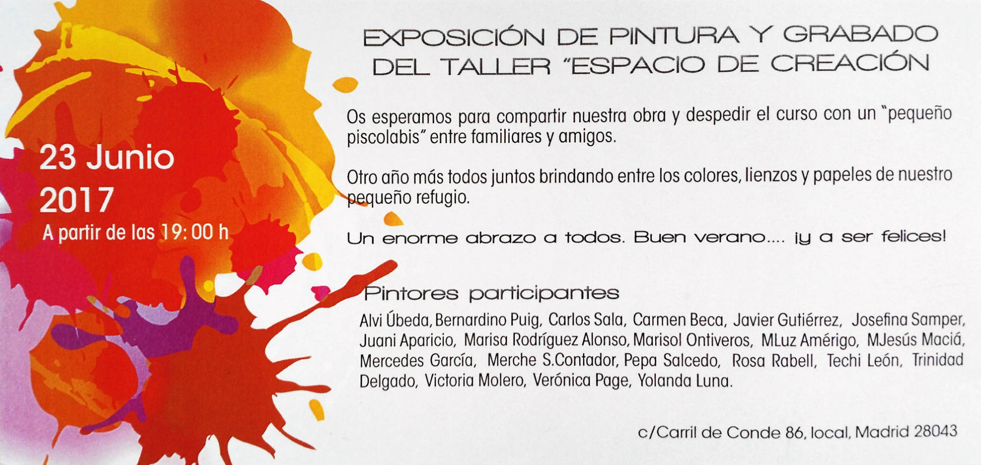 – 2017, «Exposición Colectiva», Taller Espacio de Creación, Madrid, España.