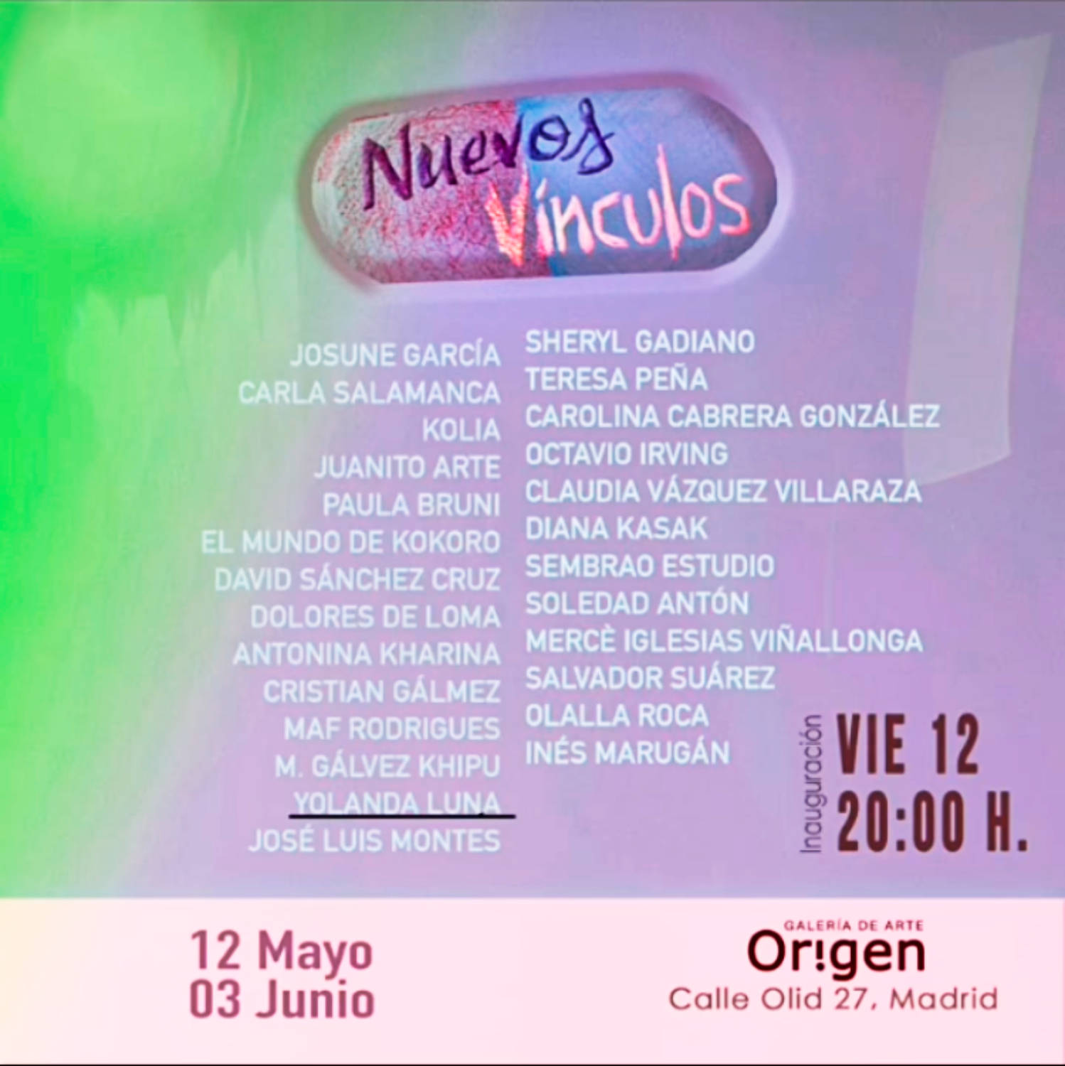 – 2023, «Nuevos Vínculos», Galería Orígen, Madrid, España.