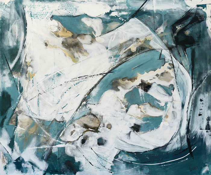 Fluido 2023 Acrílico, ceras y gesso sobre lienzo. 90 x 60 cm.