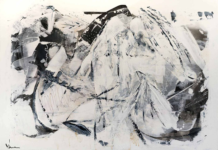 Blanco y Negro 2023 Acrílico, ceras y gesso sobre lienzo. 60 x 90 cm.