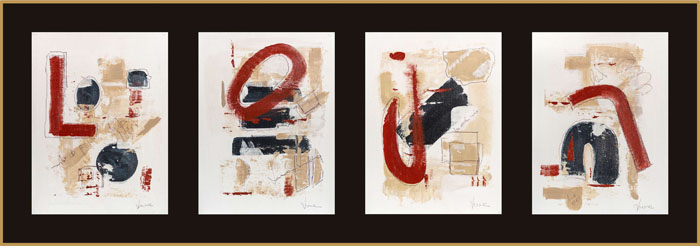 Cuatro Conexiones - Compo 2 2024 Políptico Acrílico, marcadores y grafito sobre lienzo sobre madera. Enmarcado. 33 x 93 x 5 cm.